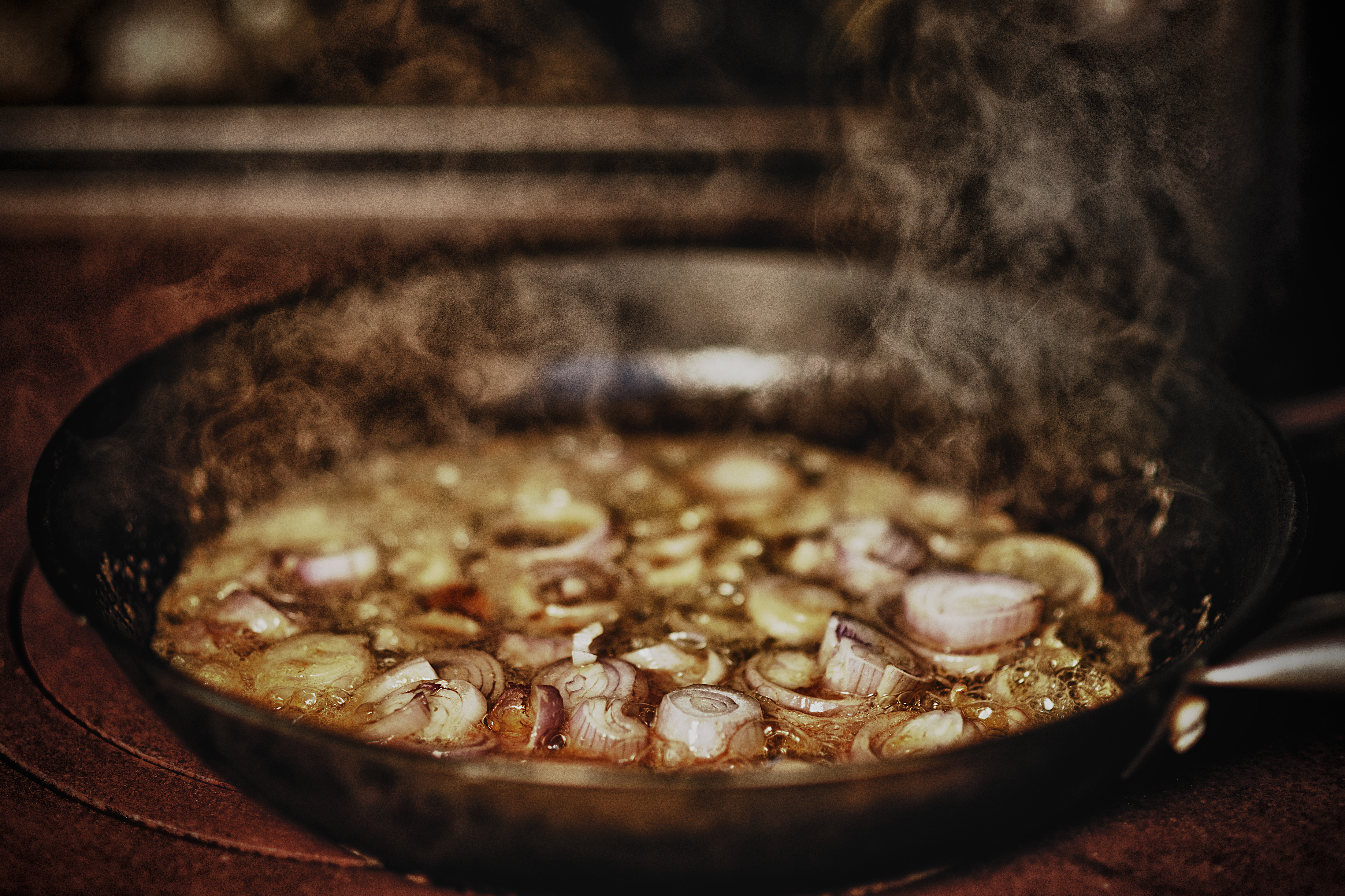 Sjalottløken surrer i smør. Foto: Jan Kraft