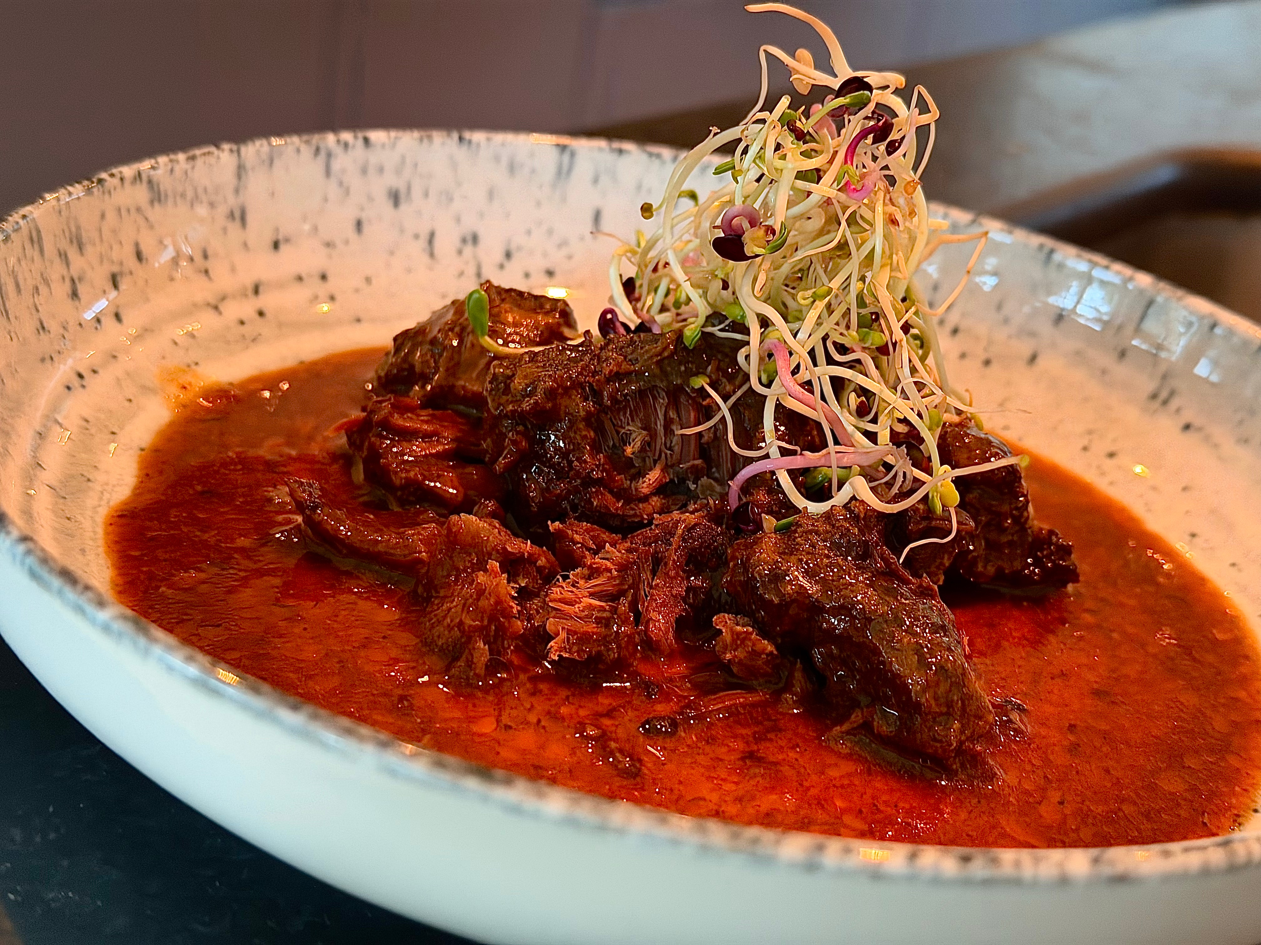 Min oksekjakehistorie ble restartet for en uke siden i vakre Hardanger. Der fikk jeg servert en nydelig og spenstig versjon av retten hos den svært dyktige kokken Espen Raknes, som driver Hallvardsnaustet i Strandebarm og Uni Sushi & Izakaya i Norheimsund.