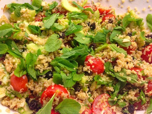 Quinoa kommer i ulike farger. En lys variant som er mest vanlig, i tillegg til rød og sort. Hvis du ikke finner det i din dagligbutikk, så prøv helsekostsjappene. Denne salaten er mitt første møte med quinoa, og for et lykketreff. Dette er noe av det mest spennende jeg har smakt i år, og er allerede blitt en stor «hit» på vår familiemeny i sommer.